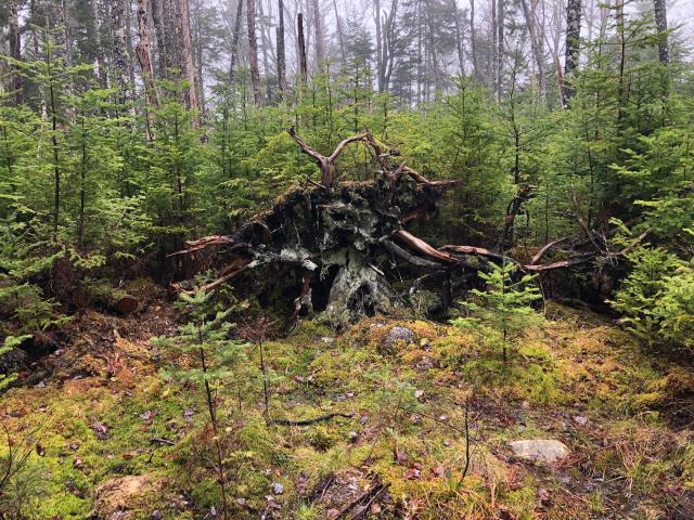 Our outside wilderness space for the ForestKids is an old growth forest, undisturbed, wild, natural, huge and magical. We call it KinderForest. KinderForest is huge, with areas of white, black and red spruce trees, communities of yellow and white birches, poplar, red and sugar maple trees, white pine, ash and oak. Some of the trees are hundreds of years old and about 30 m tall. Squirrels are everywhere. Rabbit tracks in Winter are common.